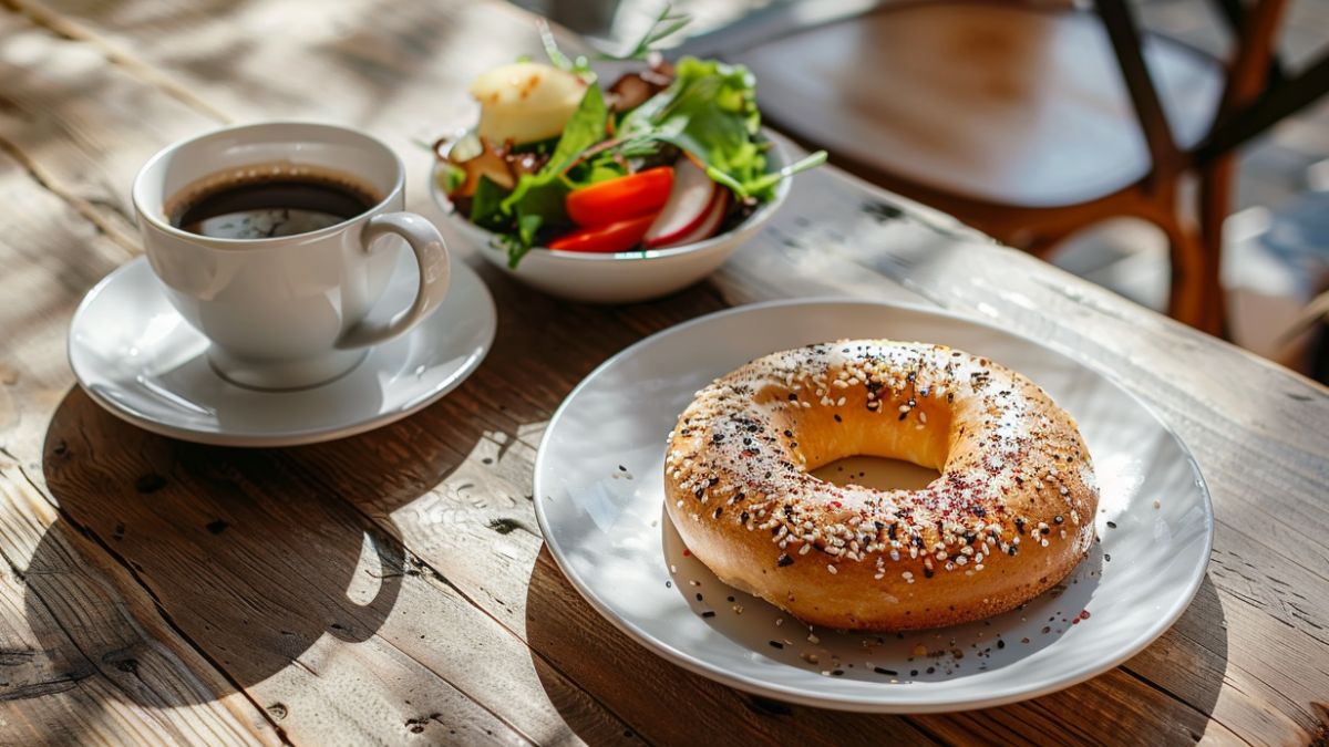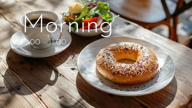 モーニングでベーグルをいただきました。焼きたてで外はパリッ、中はもちもち。やさしい音楽が流れる店内で、つい長居してしまいました。 -
