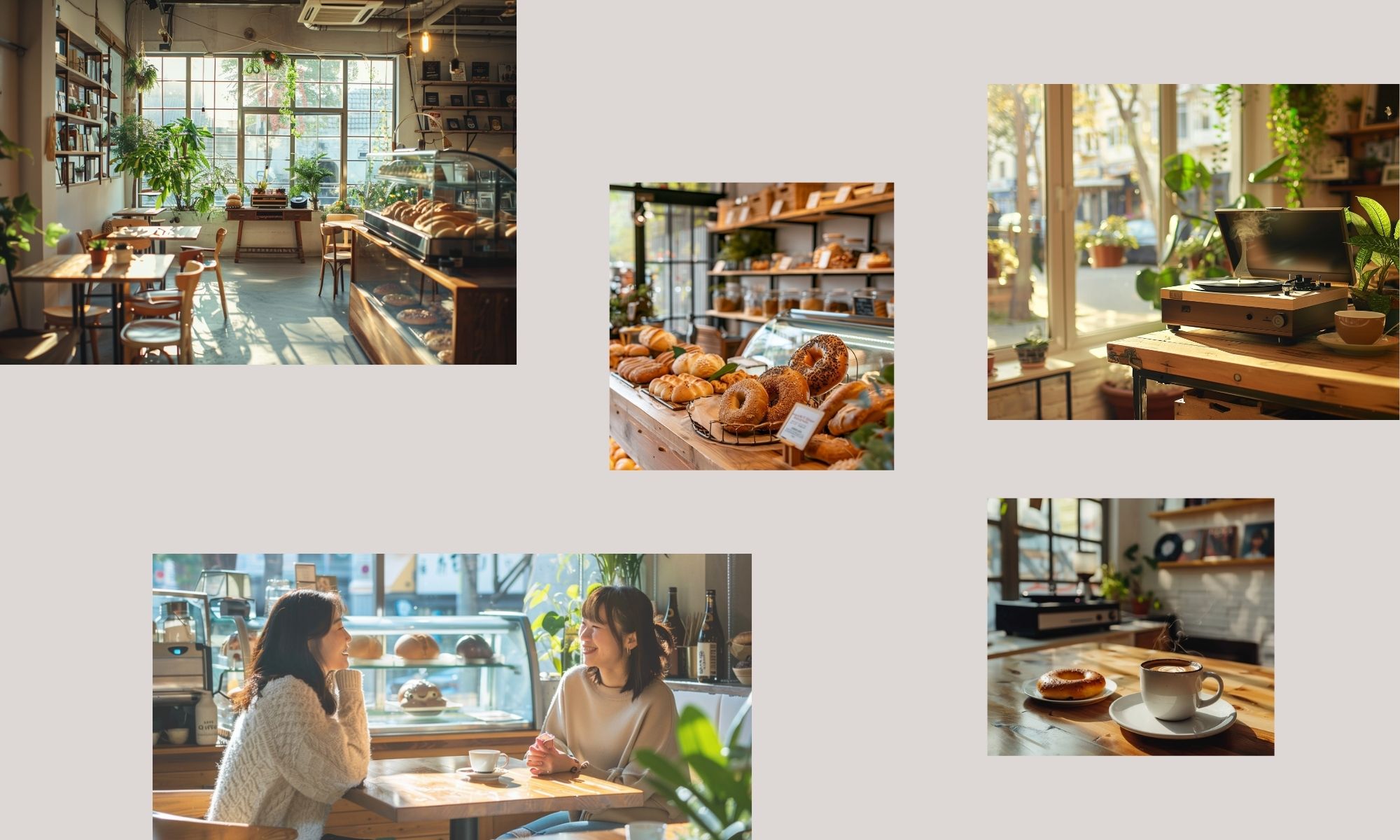 モーニング、ランチ、カフェタイムと、どの時間もゆったりと過ごせる空間。おひとりでも、大切な人とでも、お気に入りのパンと音楽を見つけに来てください。