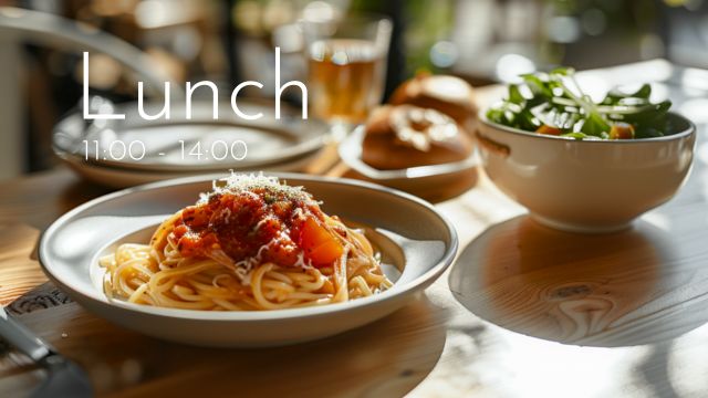 すべてのランチに、香ばしく焼き上げたハーフサイズのベーグルと、サラダをお付けしています。音楽とパンの香りに包まれながら、ゆったりと午後のひとときをお過ごしください。
