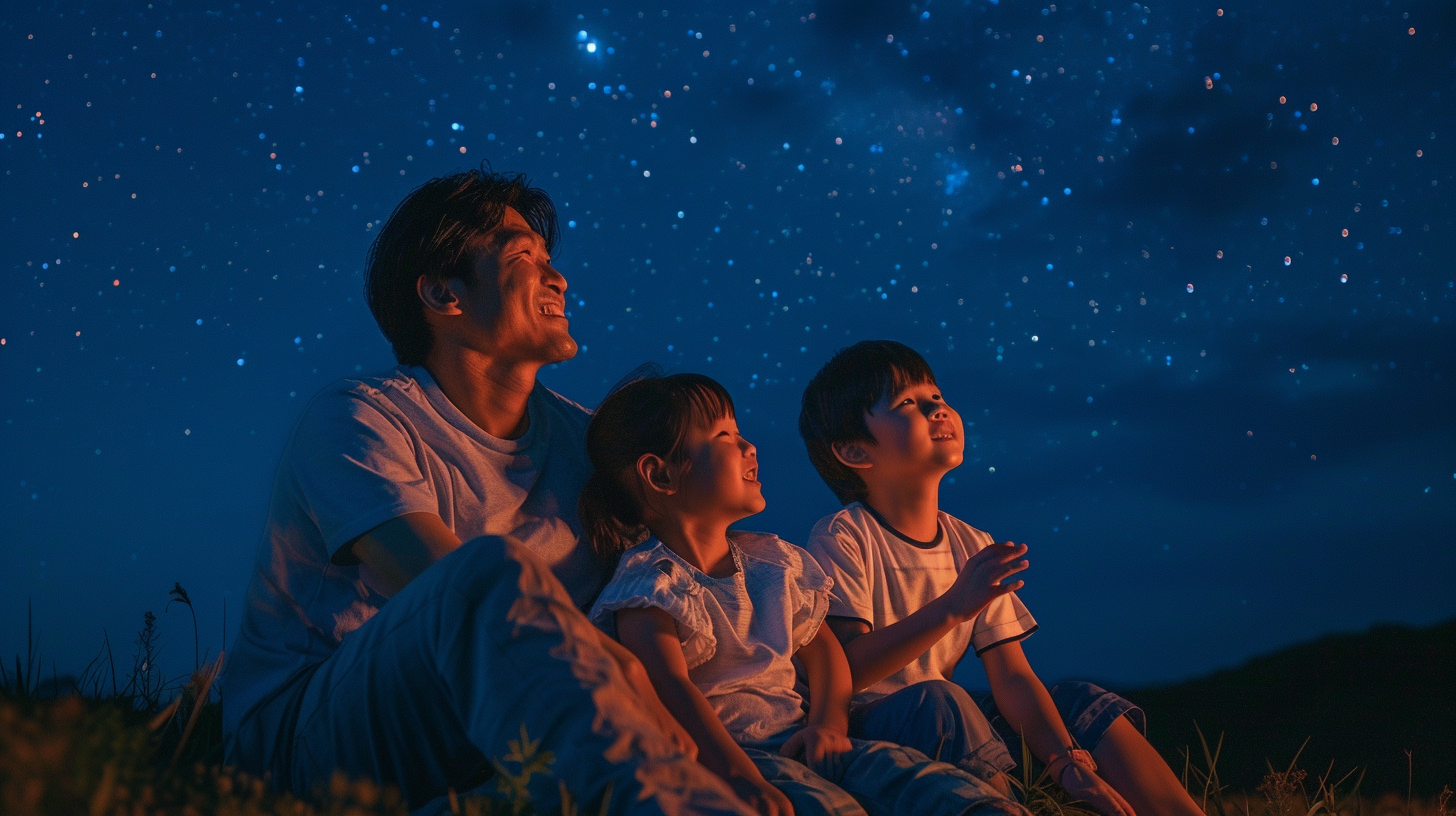 街の光から離れた静かな夜、頭上に広がるのは一面の星空。