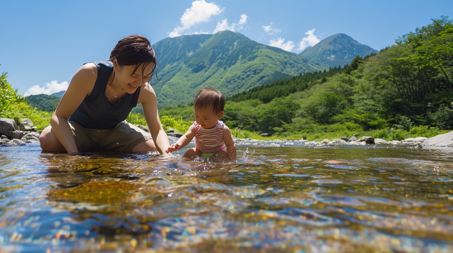 流れがゆるやかで、浅くて安全な場所を選んでいるので、小さなお子さまでも安心して遊べます。