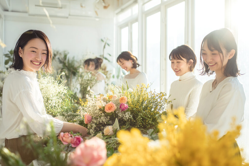 「講習会」というと少し堅い印象があるかもしれませんが、Florealでは楽しみながら自然に花と向き合う時間を大切にしています。今回は企業様のイベントでしたが、地域行事や学校・団体様向けなどの出張講習も承っております。