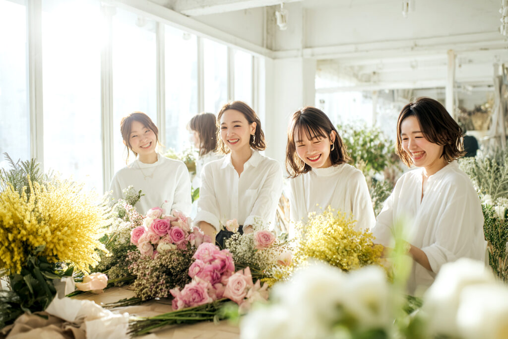 季節の花材を使って、おしゃれなアレンジメントを制作します。