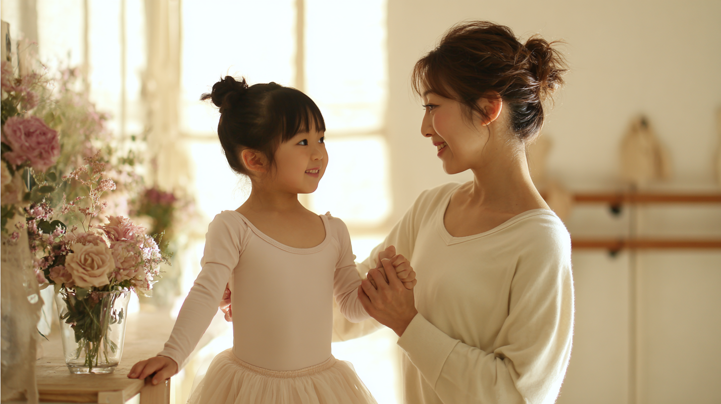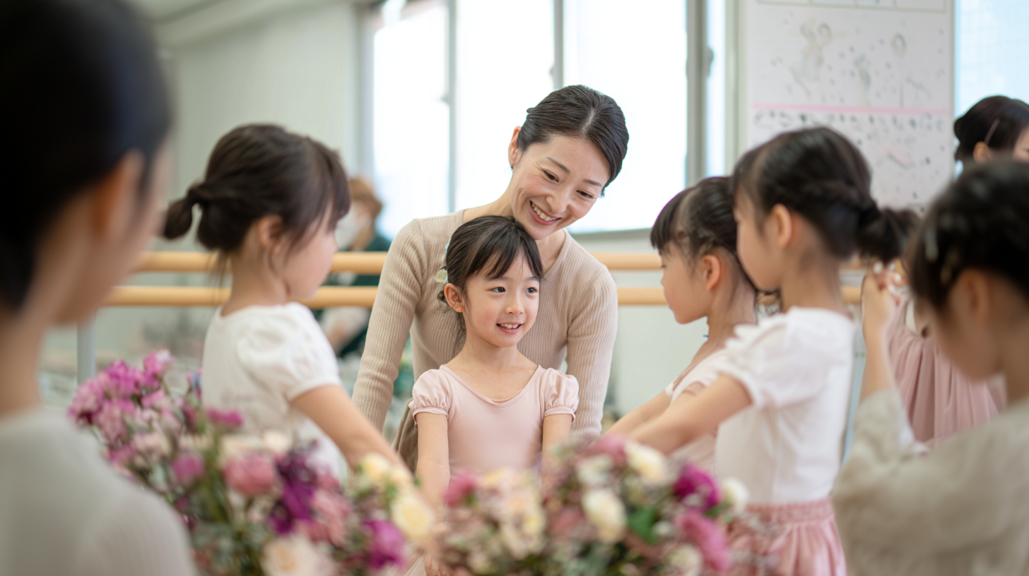 「今日はつま先がきれいに伸ばせたね」「昨日よりも笑顔で踊れたね」── そんな小さな成長を褒めることで、お子さまのモチベーションを育てます。