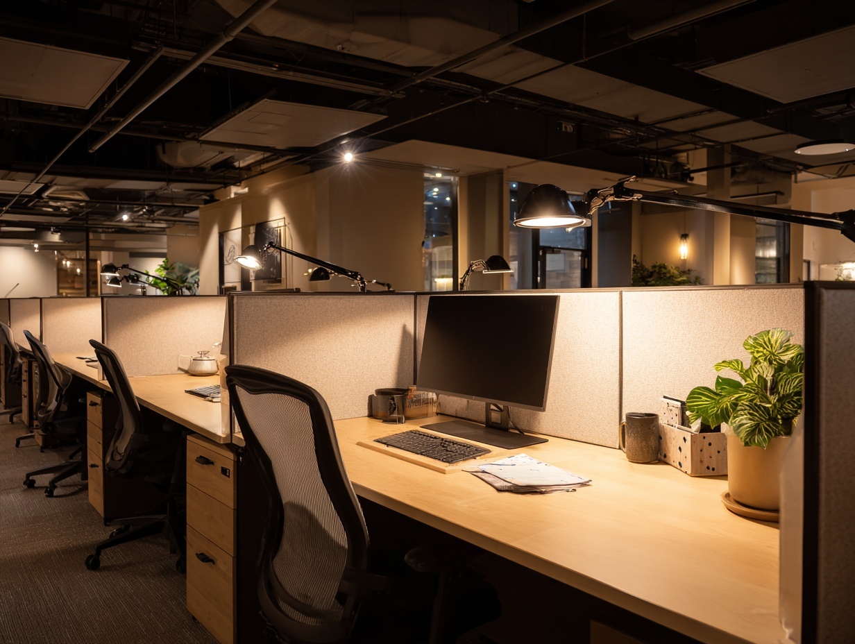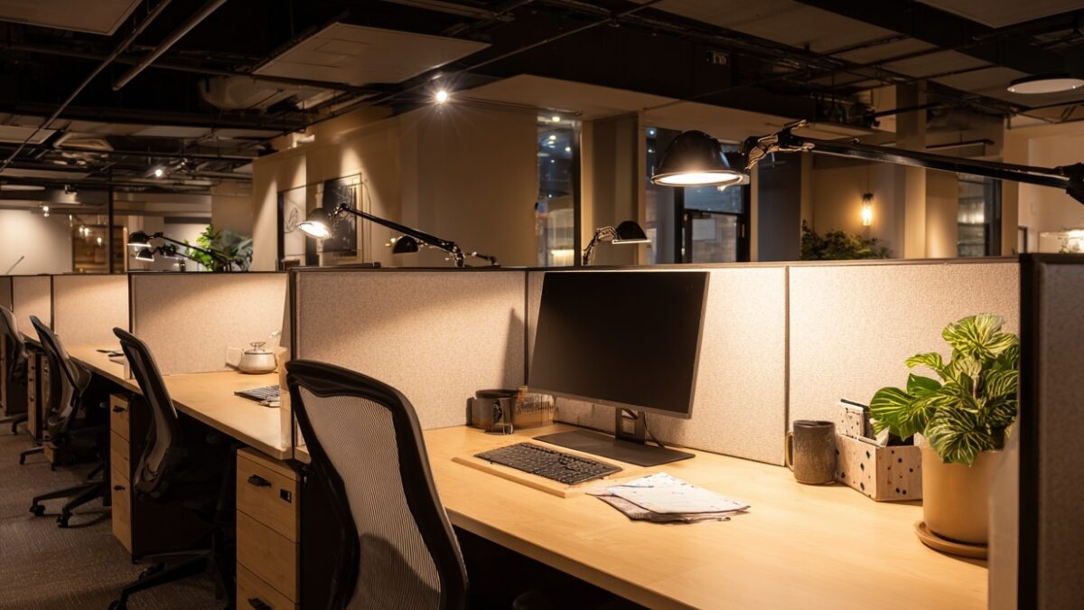 仕切り付きのデスクと柔らかな照明で、静かに作業に没頭できます。