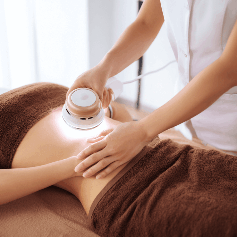 従来のマッサージや運動では落としにくい二の腕・お腹・太ももなどの脂肪に、最新マシンで直接アプローチ。