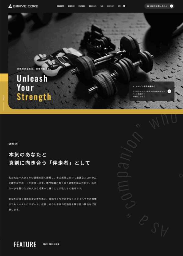 - ファーストビューに続く流れでタイトル・テキストを配置可能。円環化された欧文フォントでのあしらいを配置可能。