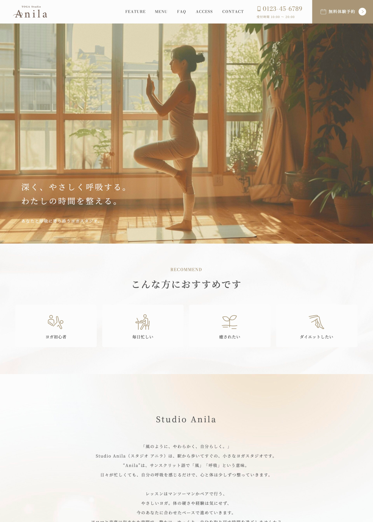 - 電話番号表示(ヘッダー / CONTACT / ACCESS)