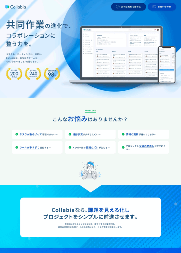 訪問者が最初に目にするファーストビューには、サービスのベネフィットを強く訴求できる構成を採用。 キャッチコピーやビジュアル、行動ボタンを効果的に配置することで、ユーザーが「ここなら自分の課題を解決できる」と直感的に理解できます。 第一印象で価値をしっかり伝えることで、離脱を防ぎ、次のアクションへスムーズに導きます。
